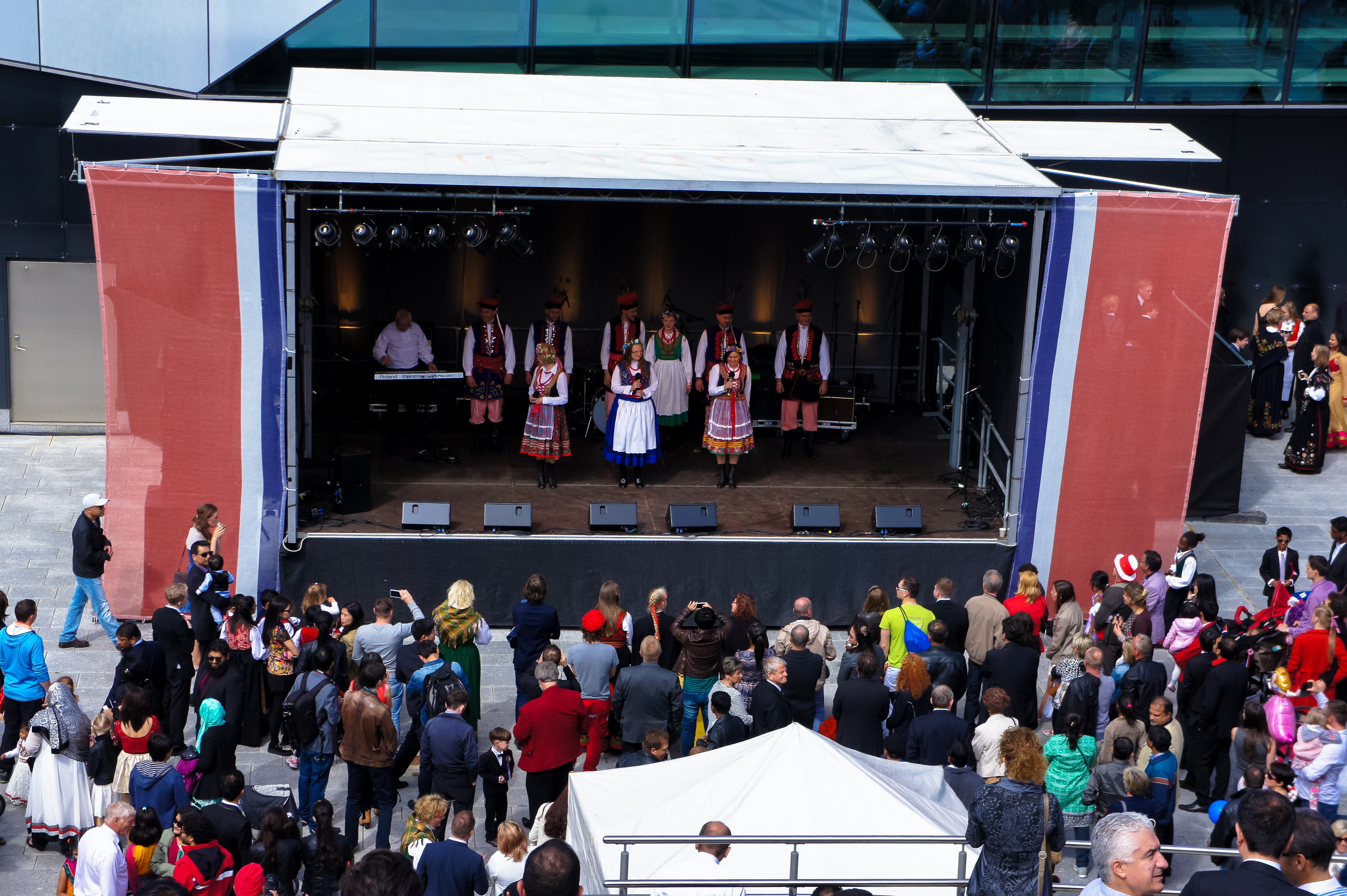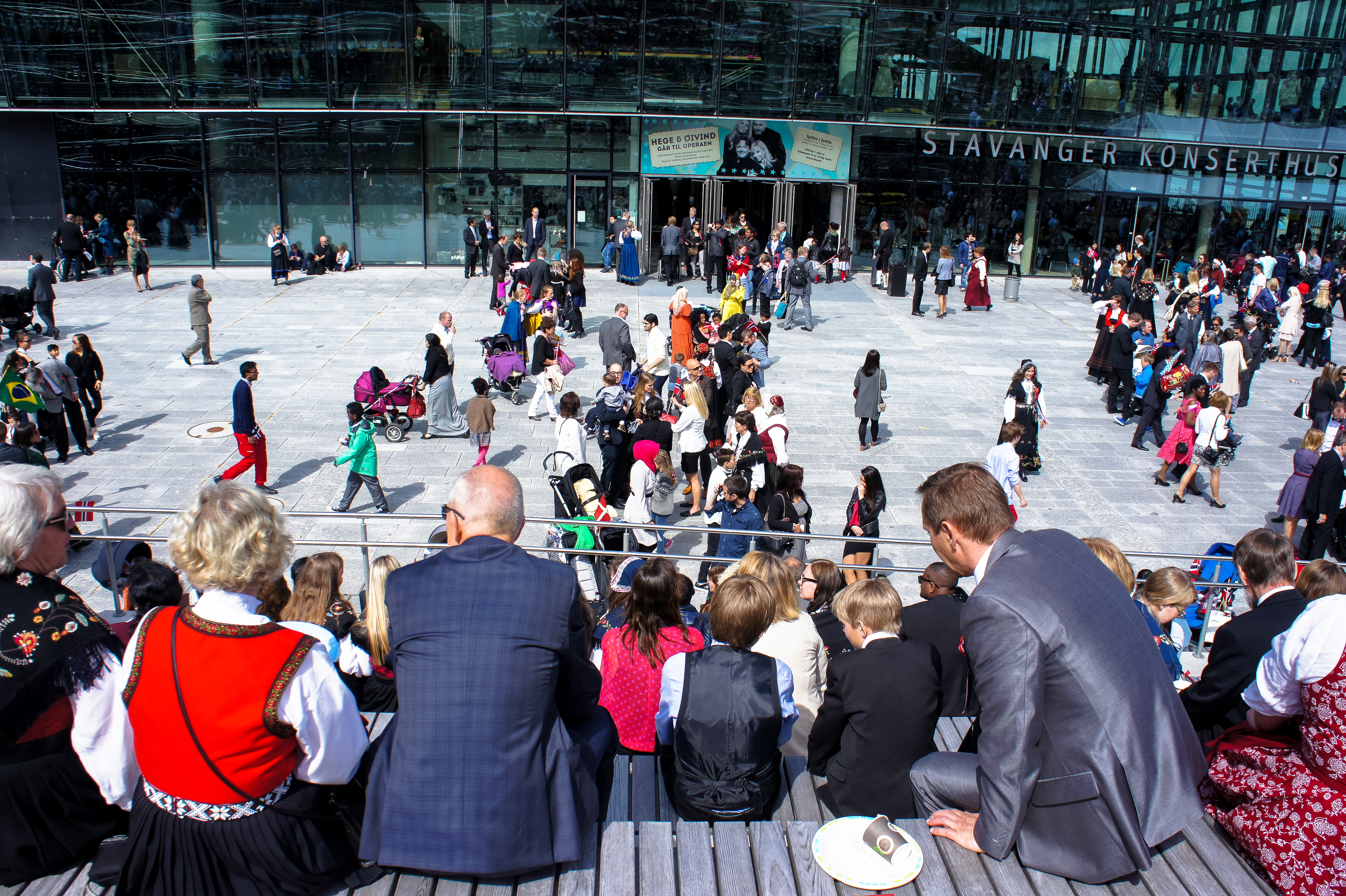 I celebrated this big event in Stavanger. I started the big day with a 17.mai frokost (breakfast) at a hotel with my lovely friends. Then, we watched the parade. After the parade I went to Stavanger Konserthus to watch the program there.