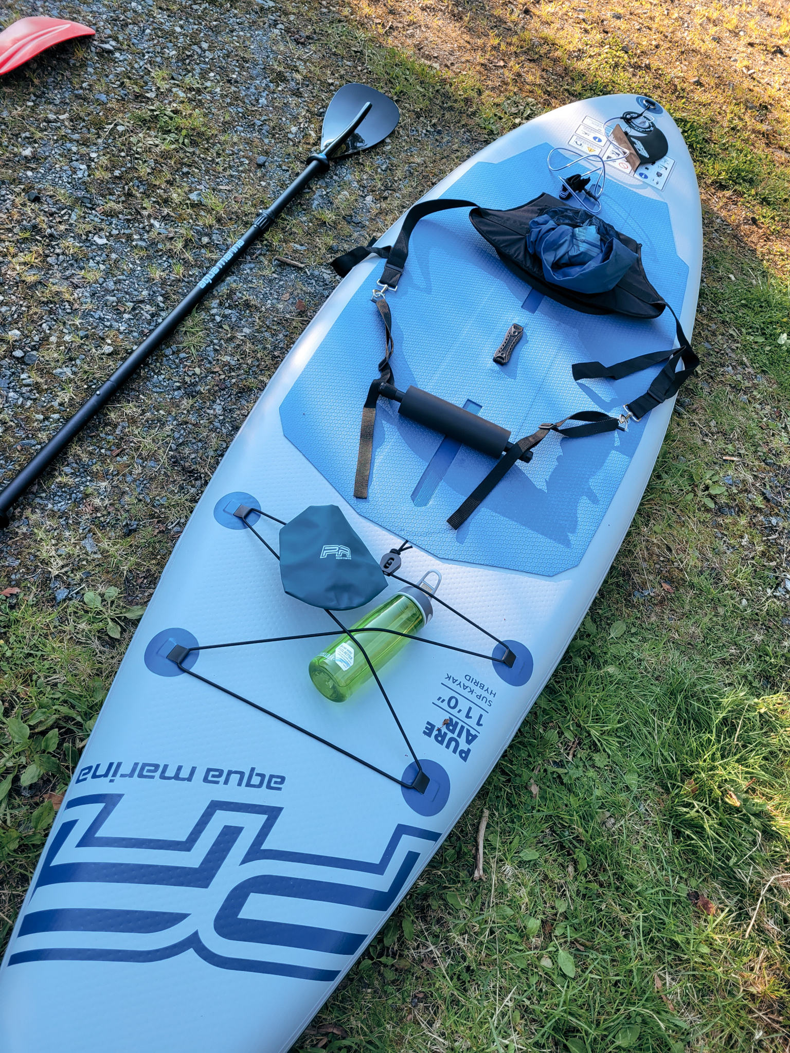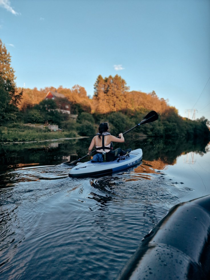 So, this weekend I bougt a SUP board from Aqua Marine. Now I have my own and I don’t have an excuse to not join friends and/or family whenever they ask me. The SUP board was on sale at Jula when I bought it so it’s a good deal given that the board can’t only be used as a stand-up SUP but also as a kayak because it comes with a seat and a foot rest. It only costs 2500 NOK for the set! I’ve never tried to stand on a SUP board before so this one is a good start for me to get used to and then later stand up when I’m ready. ๐