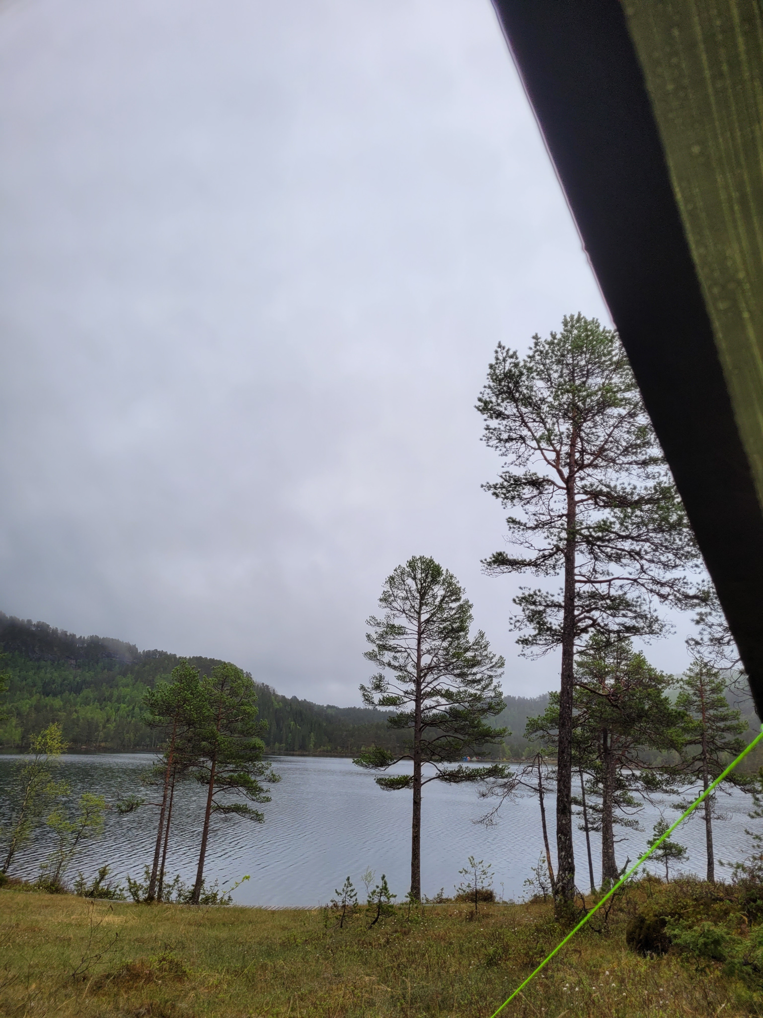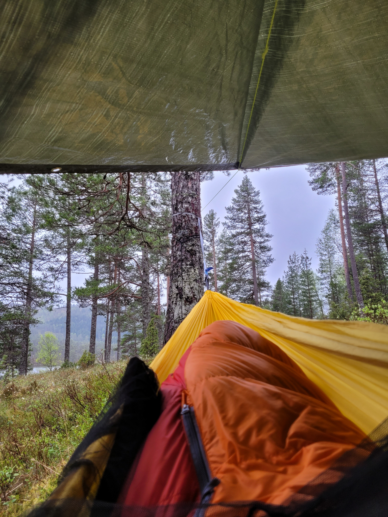 So, for this trip, I chose my Hawaii Hammock that I got as a birthday/Christmas present. Then I drove to Bekkjavatnet (a nearby lake). And from the parking spot, I walked approximately 1.5-2 km carrying my 35L backpack. My plan was to camp on the camping site but later on during the walk, it’s already occupied by a big group of teenager so I didn’t bother to set up my hammock there. It was very tempting to just turn around and go back to the car but I refused to go back without trying. So I looked for other spots to hang my hammock. Later on, I found a nice place with a beautiful view and I found two perfect trees for my hammock.
