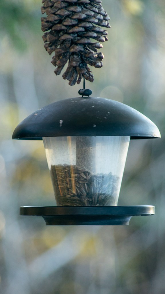 It’s been cold these past few weeks. The temperature dropping to as low as minus 6 degrees Celcius during the evenings. As a result, the grounds freezes and hardens. Making it difficult for the wild animals to find food. So, I hang food for the wild birds so they would not starve and die.