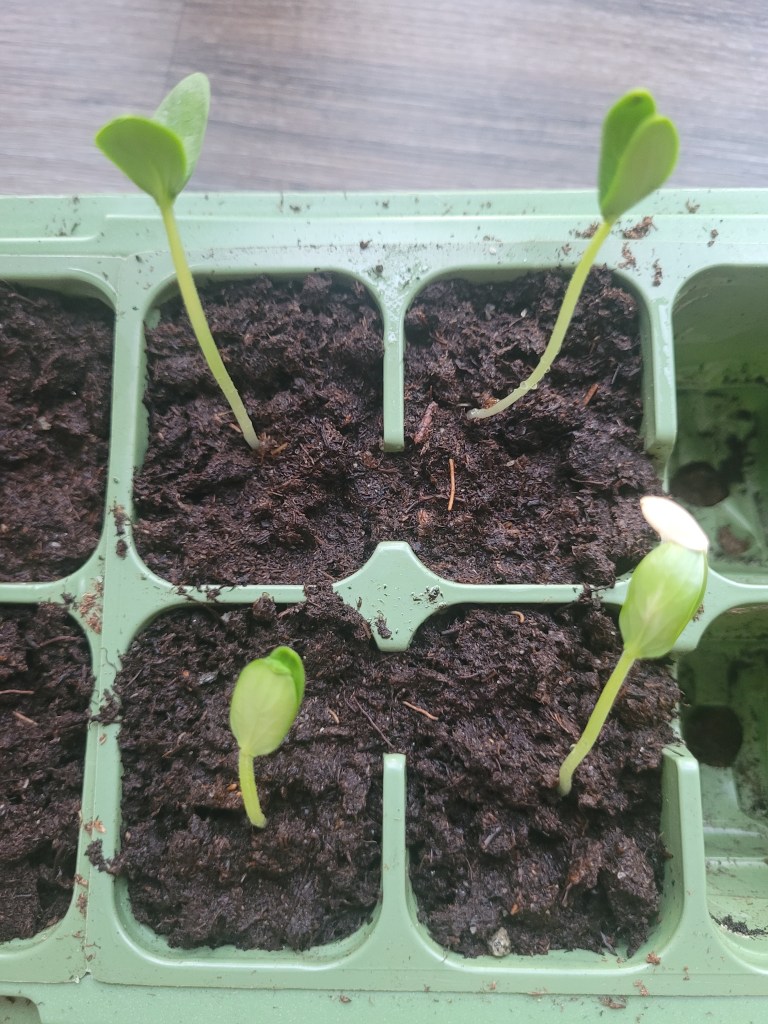 I’m actually quite surprised that the process of sowing and planting cucumbers go fast. I thought that it would take more than a week to see some sprouts in the little greenhouse.
