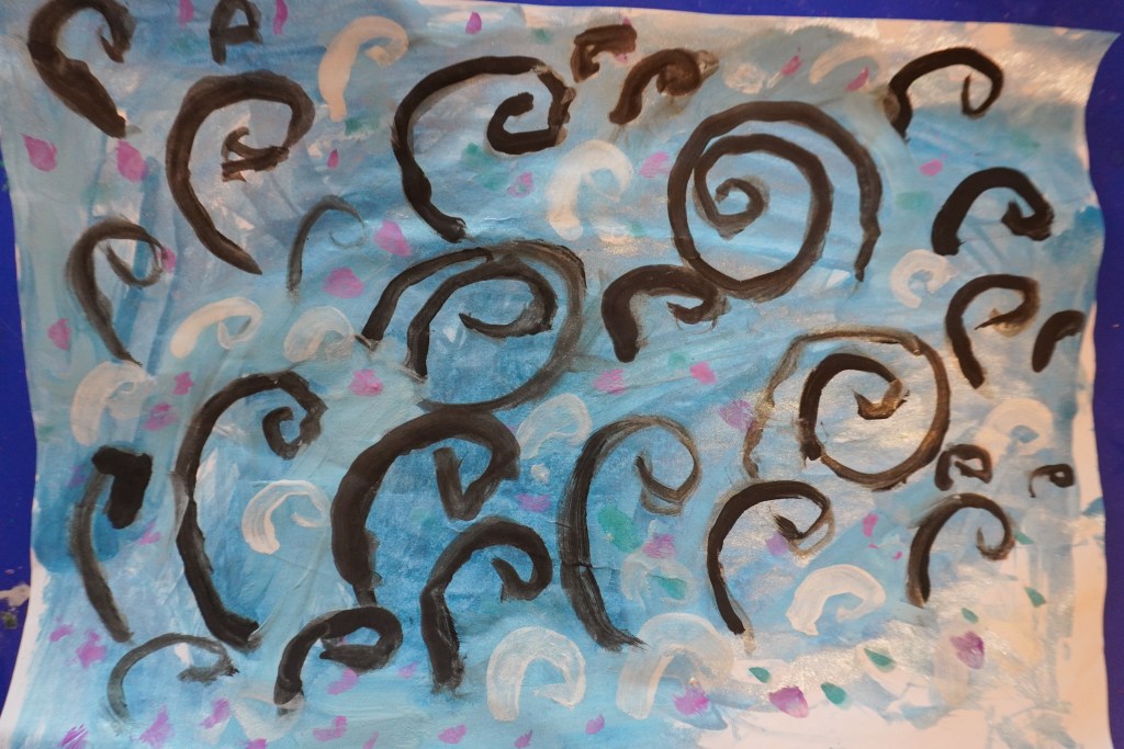Then there are times when she doesn’t know what to call her art, so I ask her why did she draw/paint it and she answers she just paint whatever she feels.